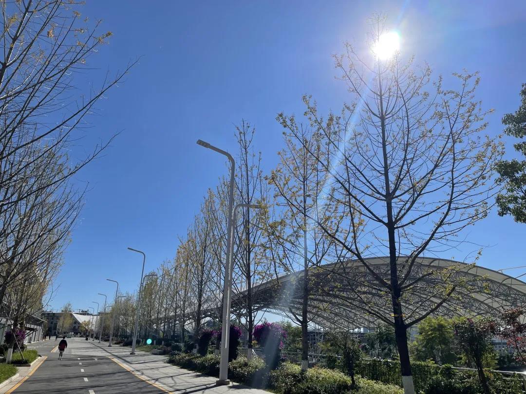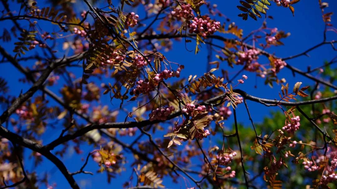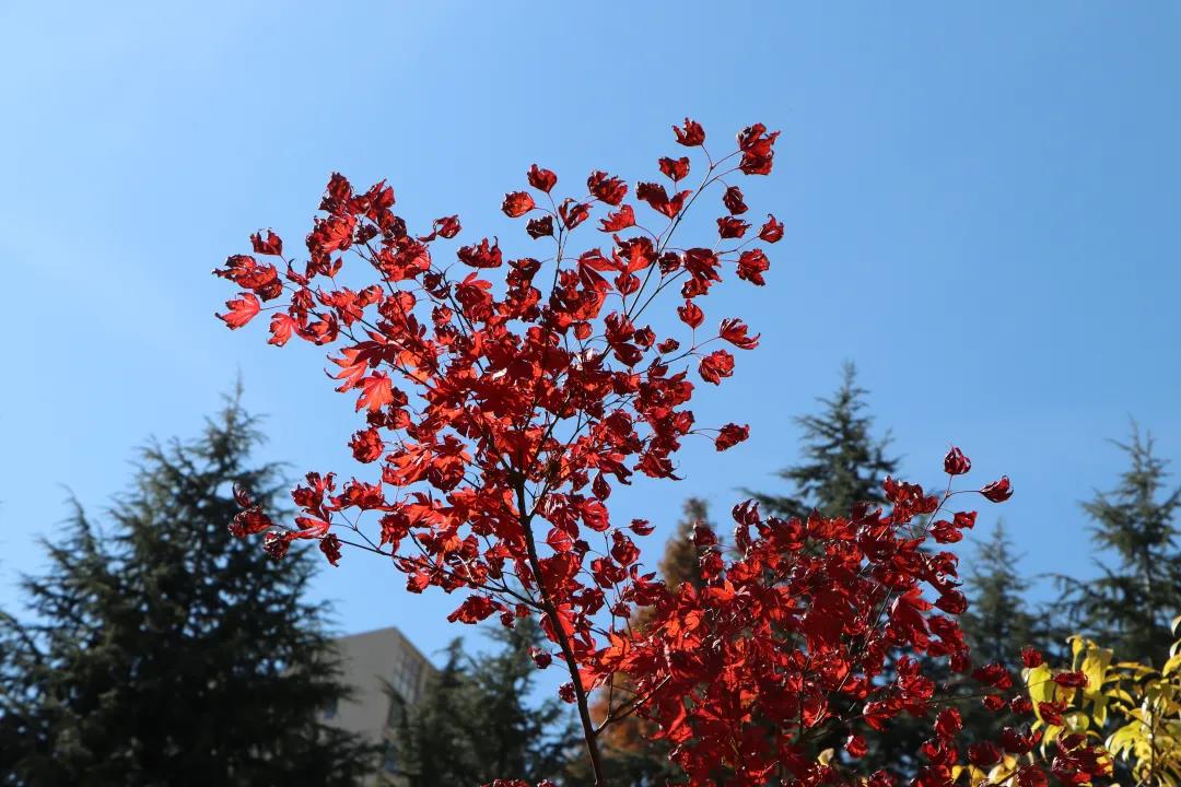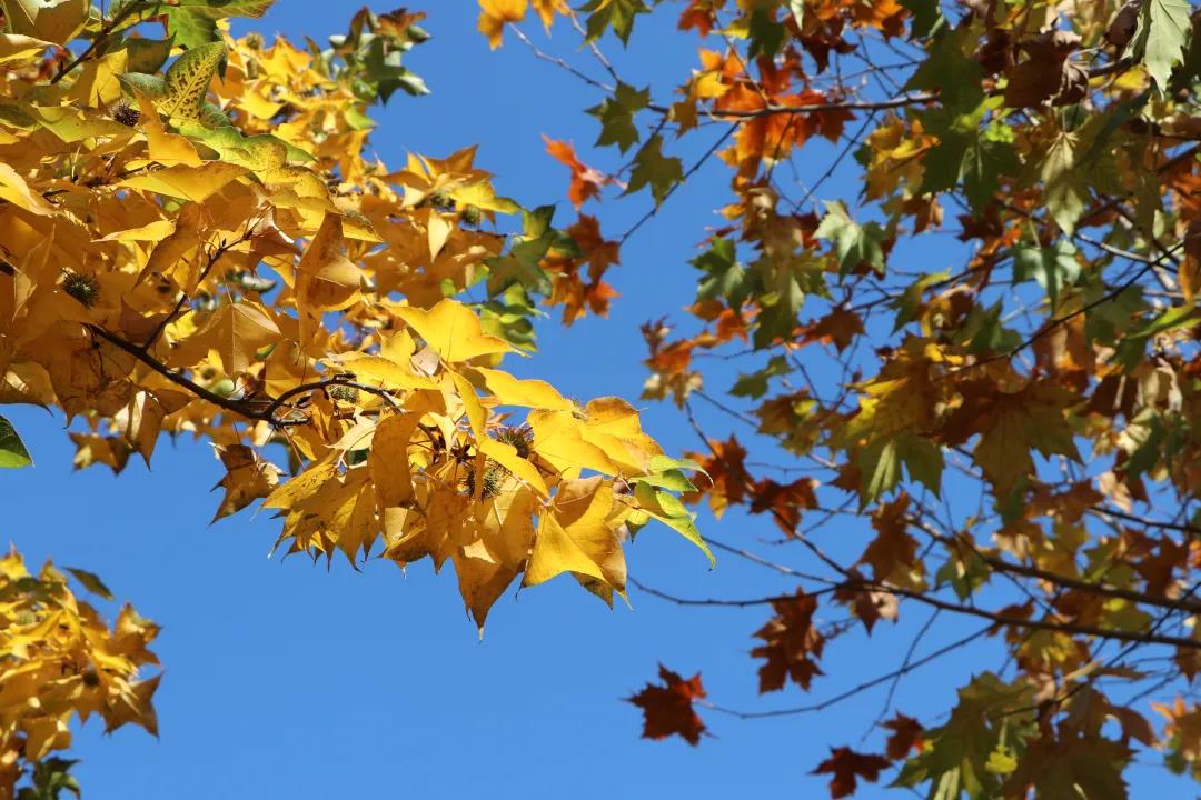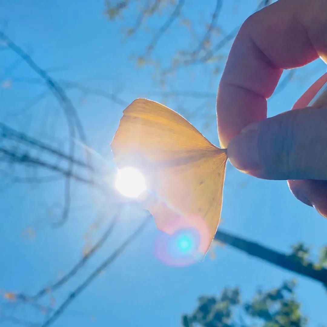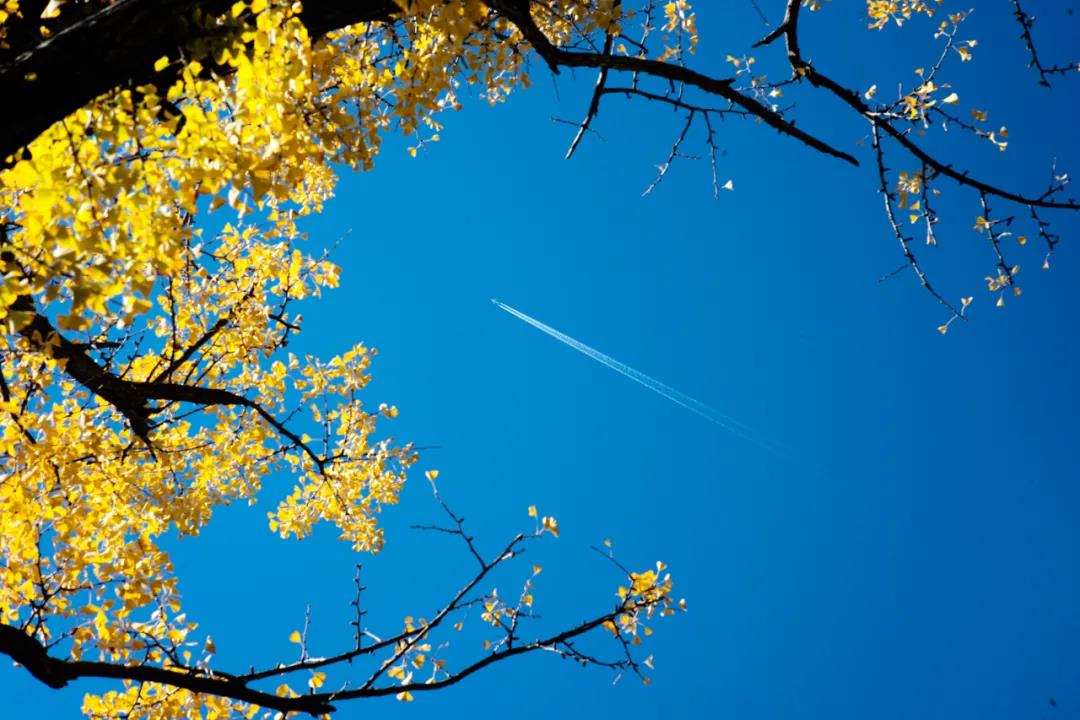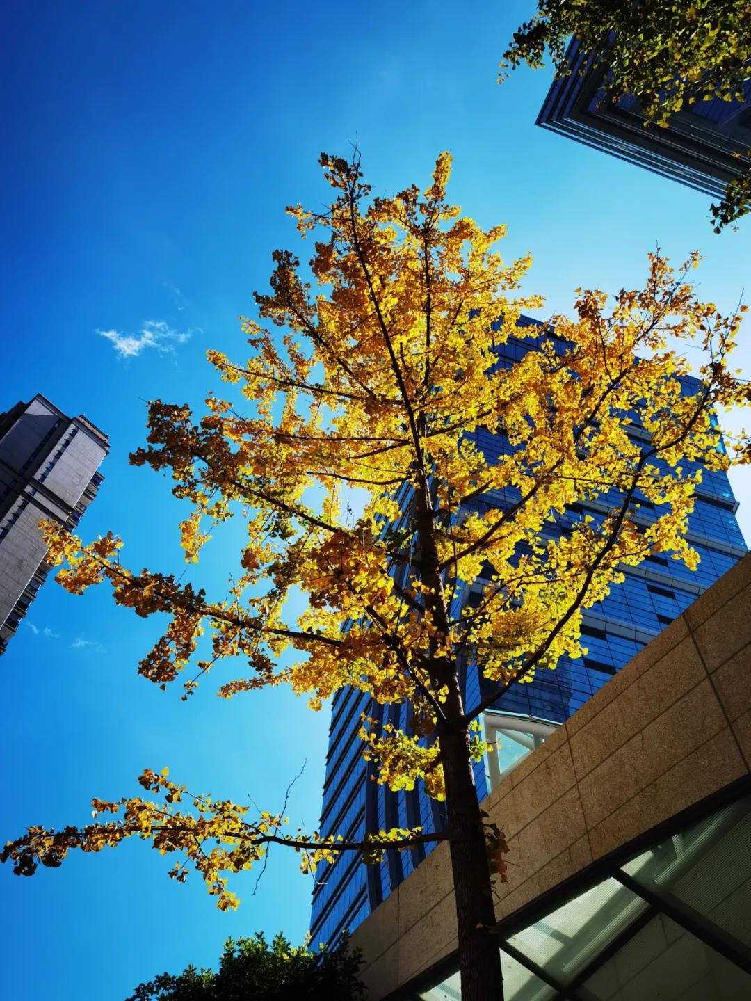 “陽光+藍(lán)天+金黃樹葉”的組合