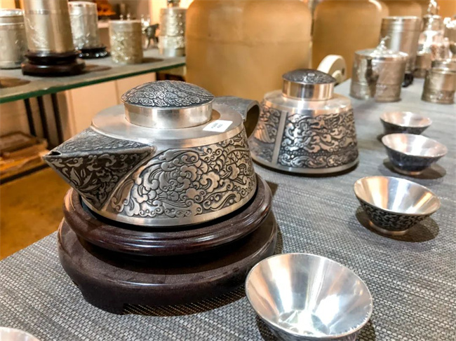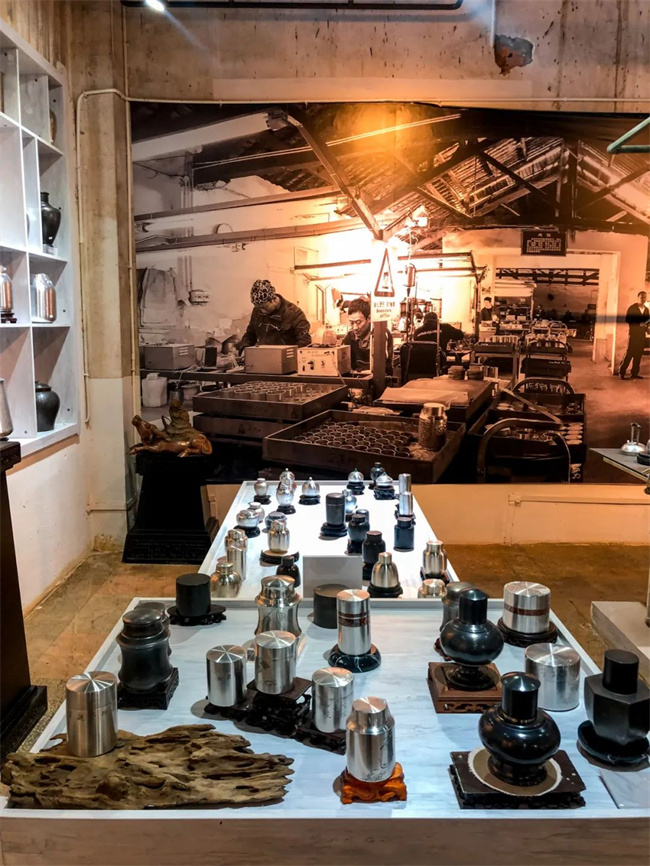 這里的金屬原料以錫為主,它們來自世界錫都——個(gè)舊,并且內(nèi)部所有金屬制品皆由大師精心制而成。車間內(nèi)的金屬制品很多,不同種類、不同樣式、不同工藝,應(yīng)有盡有。可以說這里簡(jiǎn)直就是一個(gè)金屬愛好者的天堂。
