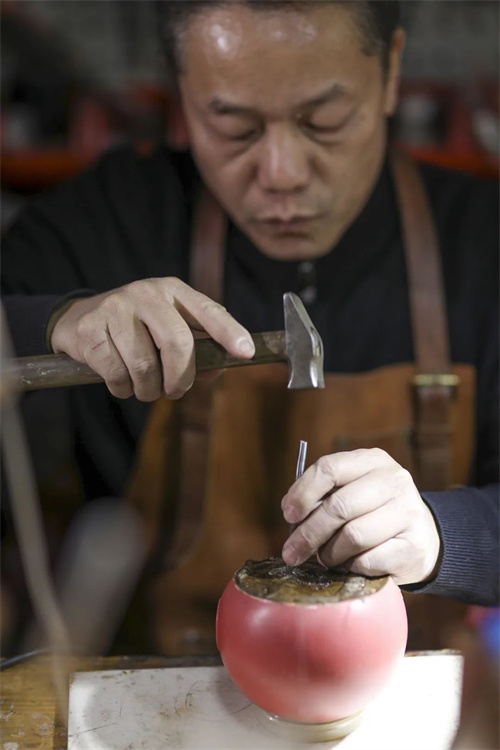 近年來,付忠華在全國、省內斬獲多項大獎,今年,付忠華被云南省人社廳評定為高級工藝美術師,即便如此,他還是不斷和自己較勁。為了讓更多人了解鋦瓷技藝,他搗鼓短視頻賬號傳播鋦瓷文化;為了讓鋦瓷技藝更廣泛地傳承發展,他曾連續多年免費傾力教學……如今,付忠華已招收學生數十人,正式收徒20余個,鋦瓷這門古老手藝,在付忠華的探索實踐中,達到“戀舊”與“煥新”的雙重平衡,并以更美的姿態,重回尋常百姓家。