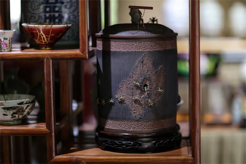 《“蟻”往無前》:看,那破損的茶葉罐身上,有一串栩栩如生的銅鋦小螞蟻正在奮力向上,洞口處,另一只小螞蟻正試圖鉆進洞中一探究竟,罐蓋上,一只小螞蟻威武地舉著一根樹枝挺身站立。吾志所向,一往無前,螻蟻尚且如此,何況人乎。作品在中國工藝美術大師作品暨手工藝精品博覽會上獲“百花杯”中國工藝美術精品獎優秀獎,在云南省工藝美術第十二屆“工美杯”榮獲金獎。