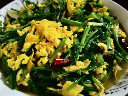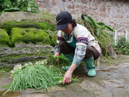 這個季節的“仙人韭菜”,正是青蔥鮮嫩的時候,只看一眼,就仿佛吃到了滿口清香。正是這種清香的味道,與其他食材搭配在一起,淡者出味,濃者提鮮。當地村民烹制“仙人韭菜”最經典的做法就是將其作為佐料,搭配自家養的土雞蛋,或素炒一盤,鮮得眉毛都掉下來,真可謂農家野菜第一鮮。因其只在巖子營有,“仙人韭菜”也成了巖子營的代名詞之一。