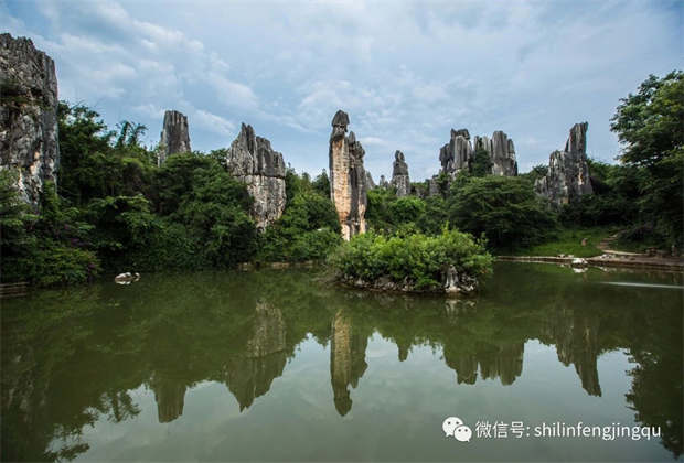 ? ? ?后人在小石林里刻下了毛澤東主席的詩篇《詠梅》絕唱,陪伴著阿詩瑪。“阿詩瑪”石像旁還播放著《馬鈴兒響來玉鳥唱》,音樂聲中,人們仿佛回到那個有著神話力量的年代,看見了阿詩瑪和阿黑哥共騎而行。傳說在美麗的阿著底,一位美麗勤勞的彝族姑娘——阿詩瑪,愛上了彝族青年阿黑。兇殘的地主熱布巴拉垂涎阿詩瑪的美貌,趁阿黑外出牧羊的時候,搶走了阿詩瑪。勇敢的阿黑聞訊火速前往營救,經過驚心動魄的斗爭,終于救回了阿詩瑪。回家時他們高興地唱起了幸福的歌“馬鈴兒響來玉鳥唱……”,但是,當兩人來到石林時,卻遭到了地主的暗算,地主勾結了崖神喚來了滔滔洪水,沖散了這對忠貞的戀人,洪水中阿詩瑪化為一尊石像屹立在小石林中的玉鳥池畔。阿黑悲痛萬分,連聲呼喚著“阿詩瑪——阿詩瑪——”,回音蕩漾在山巖之中。這個動人的故事被拍成了經典電影《阿詩瑪》,從此,“阿詩瑪”景觀備受游客青睞,成為無數人心中游石林的打卡圣地。