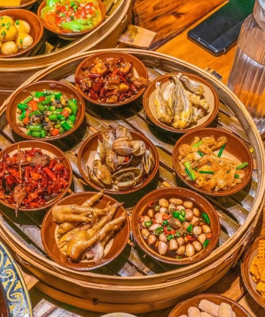 江湖菜是重慶市特色的飲食,具有濃厚的巴蜀鄉土氣息。所謂江湖菜,用烹飪專家的話來說,是指相對于正宗菜而言的菜式。它植根于民間,從川菜為基礎,師承多家,不拘常法地重復烹飪、復合調味、中菜西做、老菜新做、北料南烹,看似無心,實乃妙手天成,從而收到出奇制勝的效果。江湖菜最大的特點“土”,“ 粗” ,“雜。