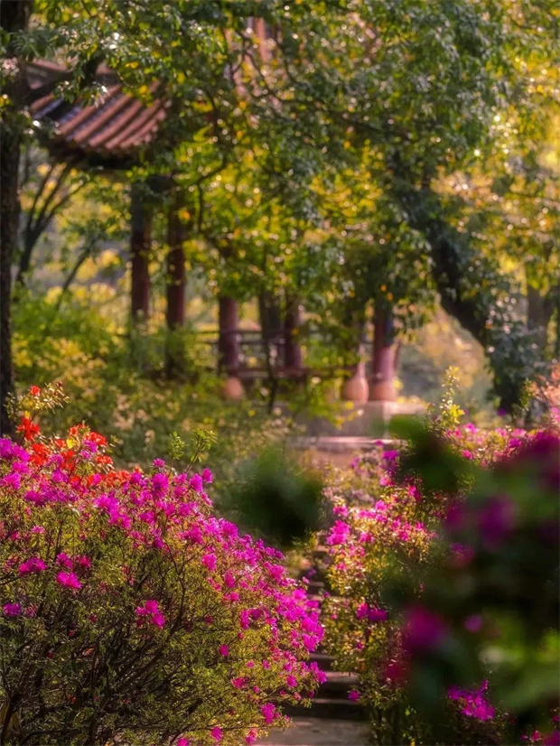 明植物園化身為杜鵑花的海洋。漫步于園內,每一步都踏著芬芳,每一眼都是驚艷。