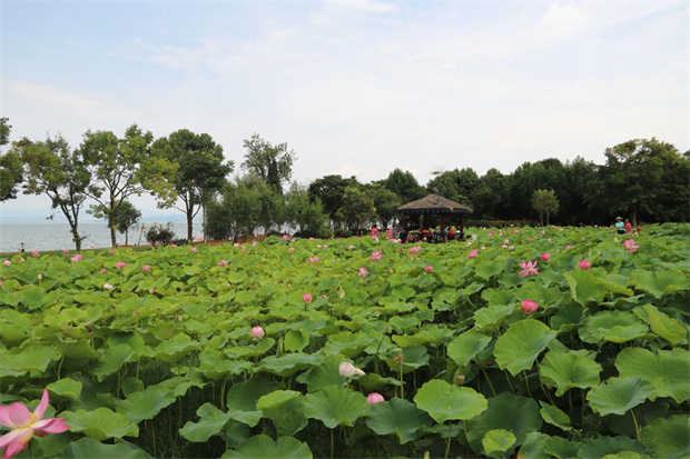 曾溢出?;òαⅲ馍衔⑽⒕`開一點粉白,像是抿著嘴笑的少女。此時荷塘最是清新,連空氣都浸著淡淡的荷香。