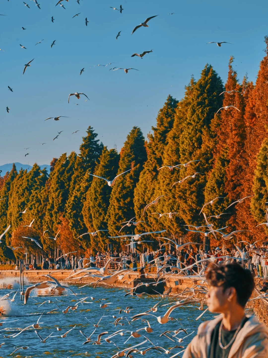上午:前往滇池,此時正值紅嘴鷗遷徙季節,可以在湖邊漫步喂鳥,欣賞五百里滇池的煙波浩渺。滇池是免費開放的。