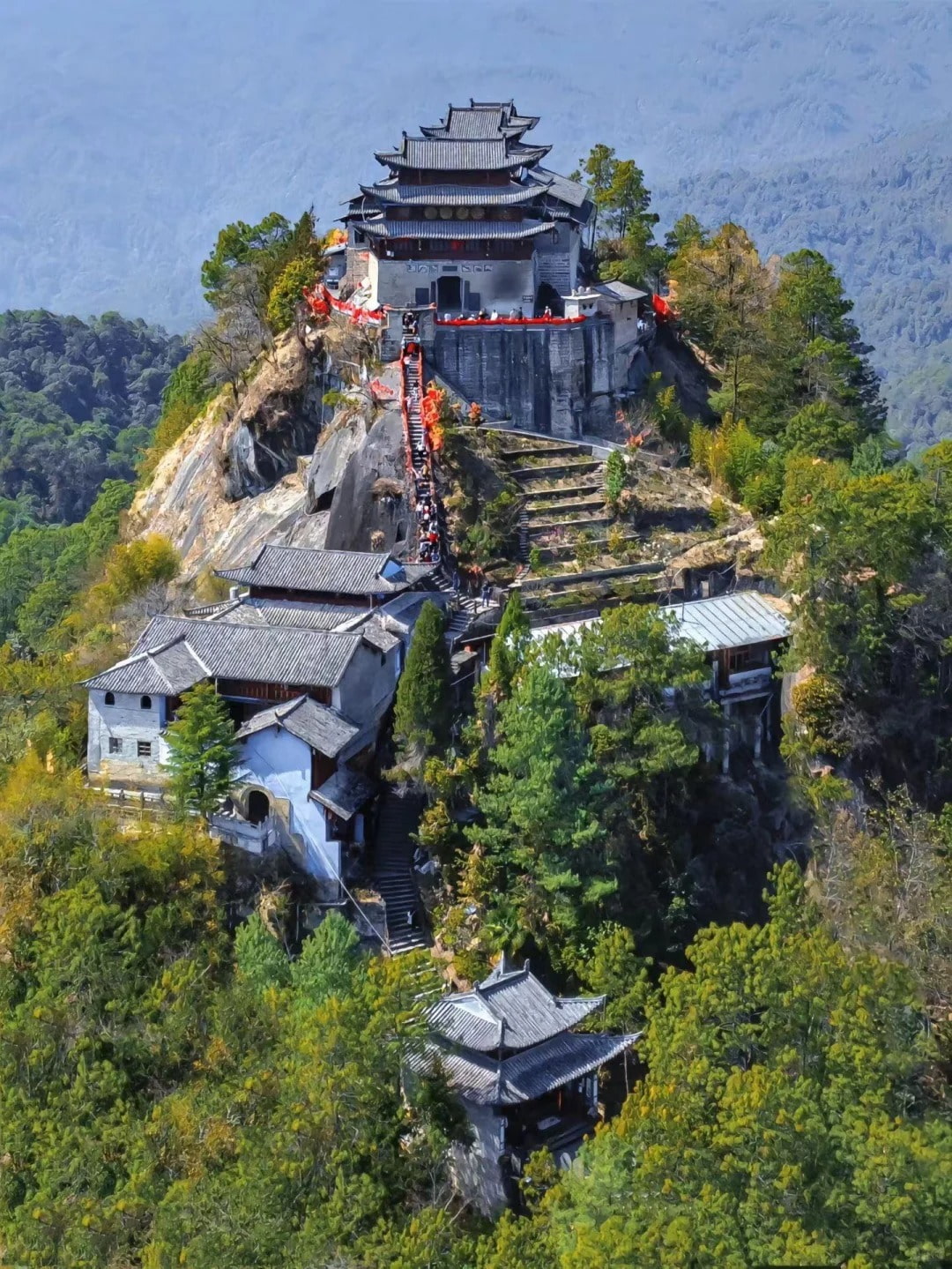 上午:從騰沖拼車前往云峰山,人均 30 元,車程 1 小時。云峰山海拔 2445 米,全程約 3 公里石階登山道,山頂有始建于明代的云峰寺,懸于絕壁之上,被譽為 “空中道觀”,門票 40 元。