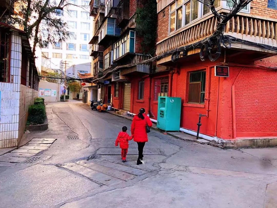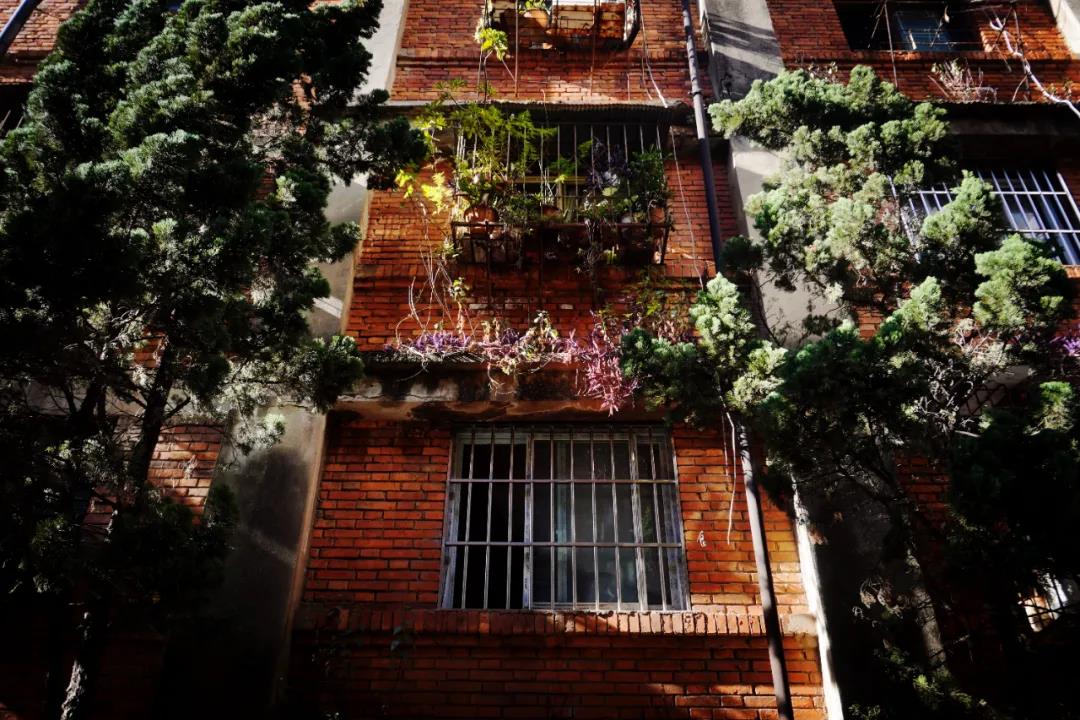這里老舊的樓層錯(cuò)落著,磚紅色的墻面有著歲月的斑駁,坑坑洼洼的水泥地上長(zhǎng)出了青色的苔蘚,紅與綠的交錯(cuò)中,復(fù)古大片的質(zhì)感油然而生。