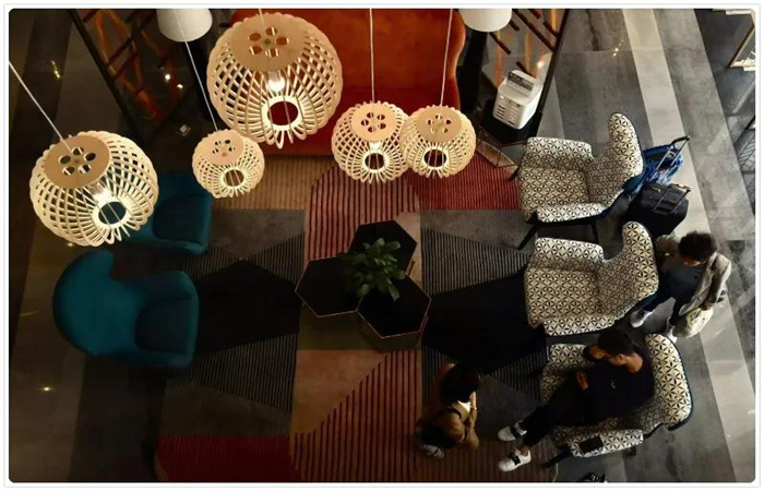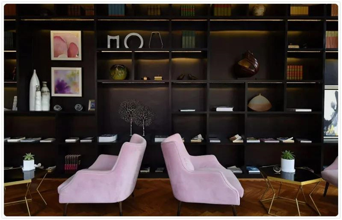 酒店輕奢的裝修風格完全契合“人們的顏值審美”,這些從視覺可見的精致設計,貫穿在酒店的每一個細節。從酒店單獨劃分出區域的書吧,每個樓層的中空設計,房間內色彩鮮明的搭配,到中西混搭的裝飾,都是法式文化與中式文化完美碰撞。