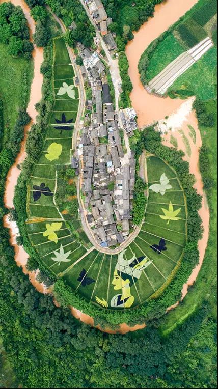 從高處俯瞰,五顏六色的條塊景觀,把一幅幅美麗壯觀的田園風光畫卷展現給世界。到每年九月,彩色水稻編織出各色的主題圖案,更是奪人眼球、美不勝收!