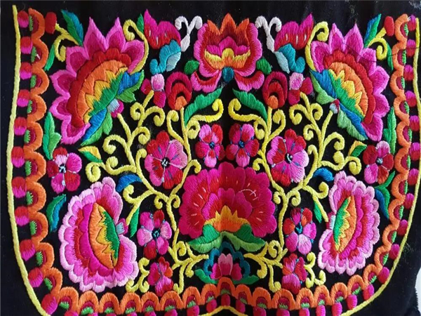 分布廣闊,人口眾多的彝族也有自成一體的刺繡風格。它們的多以黑色、黃色或紅色為原色,再配上其他鮮艷的色彩。而刺繡的圖樣則主要是彝族的紋案象征,有抽象的符號圖案,也有具體的山川,花卉和動物圖案。