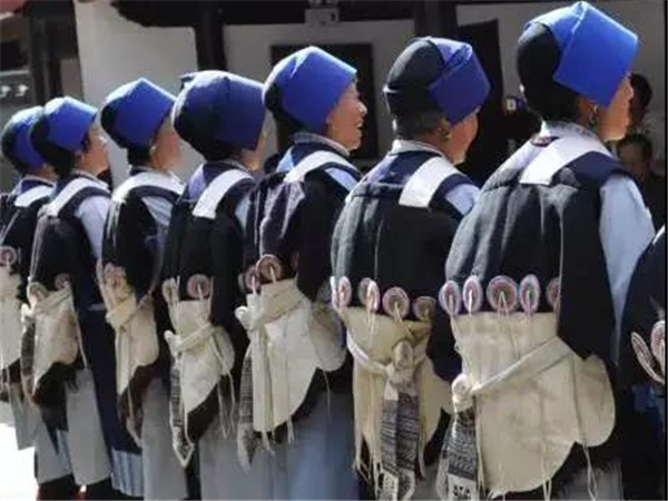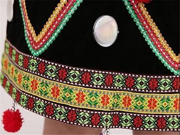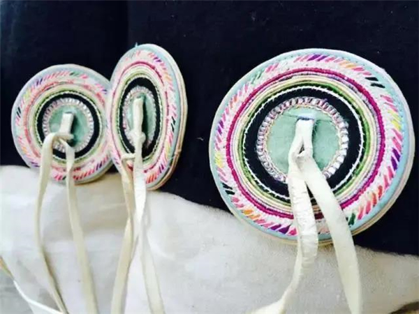 世代居住在玉龍雪山之下,碧水繞古城的麗江納西族,其刺繡就帶有濃重的生活元素。納西婦女在刺繡時喜歡古樸厚重的色調,色彩應用上十分講究,鮮艷的彩線多配以黑底或白底,使色艷而不輕浮,黑而有光澤,加上金銀線和金銀片點綴,達到色彩絢麗、明朗而又柔和悅目的效果。