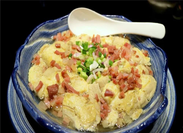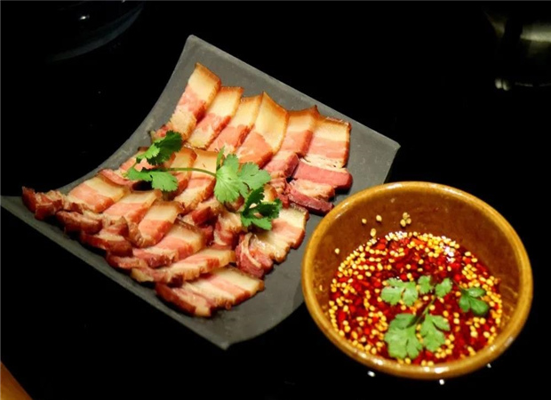 不急不急,還有:燒熟的茄子和大紅菜椒切條,佐以酸辣爽口的料汁;異香撲鼻的火腿丁蒸臭豆腐;紅白相間、咸香迷人的臘肉涼片,一定要配上一碟子麻辣蘸水才夠味;干煸牛干巴和藕片又香又有嚼勁;一整塊清清白白大豆腐,澆上紅艷艷的涼拌汁,簡單粗暴有味道……
