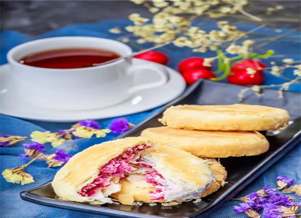 鮮花餅是以云南特有的食用玫瑰花入料的酥餅,外皮酥香,鮮花餡料滿滿的都是清香,仿佛能吃出新鮮花瓣的柔嫩。