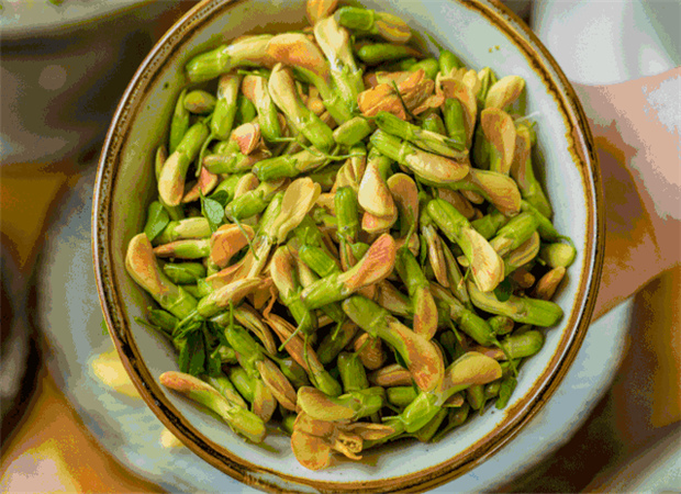 香椿早在漢代就與荔枝齊名,作為南北兩大貢品。谷雨時節的香椿嫩如絲,更是其中的極品,“嫩芽味美郁椿香,不比桑椹遜幾芳”,簡單用水焯燙就可將它獨特的香氣發揮到極致。
