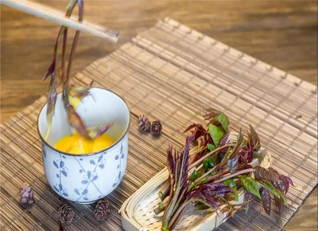 香椿是春天獨有的蔬菜,稱為“春菜”。每年春季谷雨前后,香椿發的嫩芽可做成各種菜肴,它的顏色猶如瑪瑙、翡翠,而且香味濃郁。