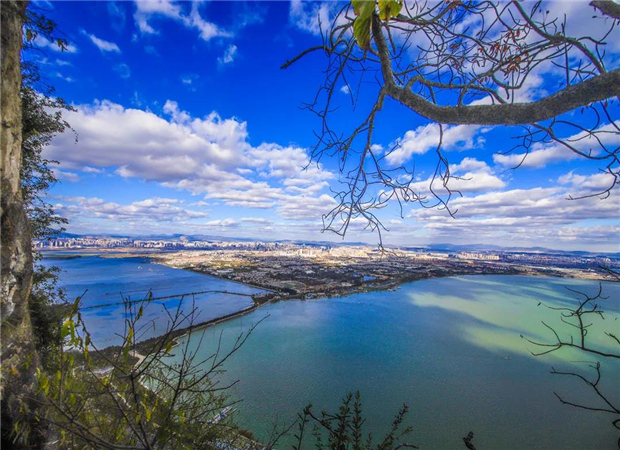 既然要觀賞滇池,第一首選地當然是海埂公園。所謂“海埂”,就是指深入滇池中的一道長堤,把滇池分成了兩片湖泊,沿著堤壩到湖中游覽觀光,實在是美倫美煥、其樂無窮。