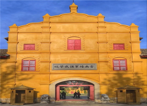 它始建于1909年,初建時被稱為全國三大講武堂之一,目前建筑群依舊保存完好,黃色的外觀吸引了無數攝影師的鏡頭