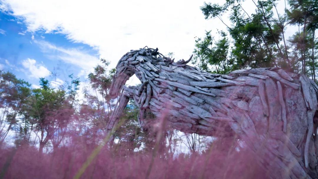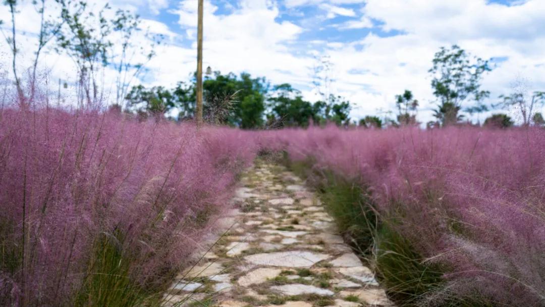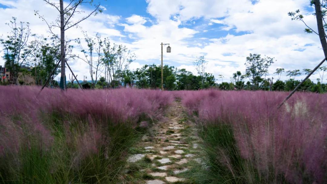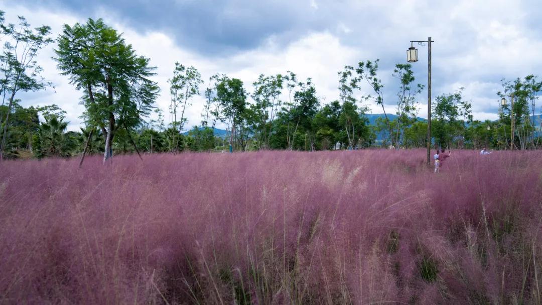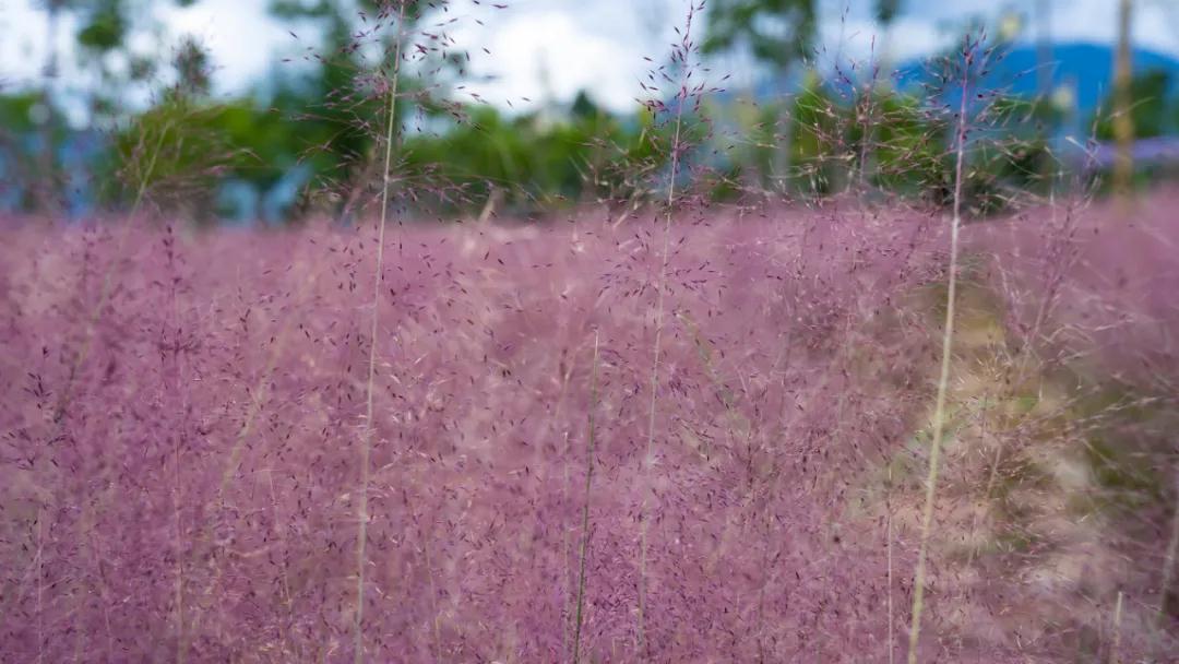 半身高的粉黛亂子草縈繞身側