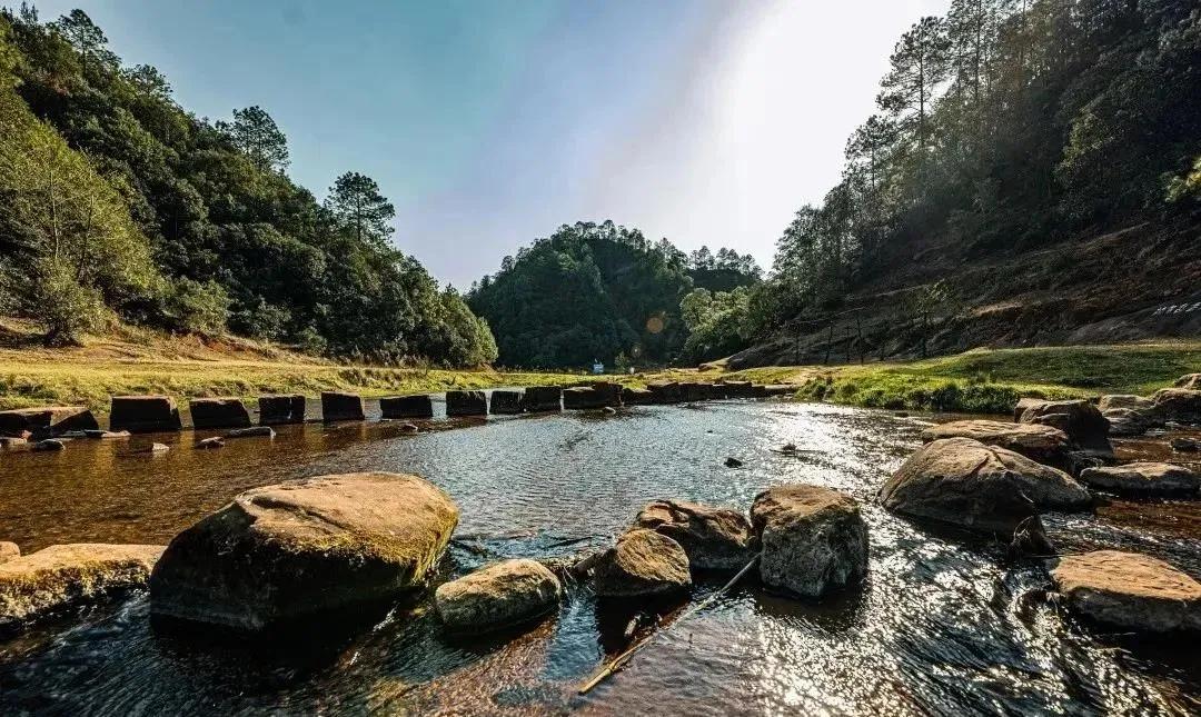 溪流潺潺,清澈見底的河水緩緩流淌,流域內森林覆蓋率極高,水質清澈,一年四季叮咚流淌,