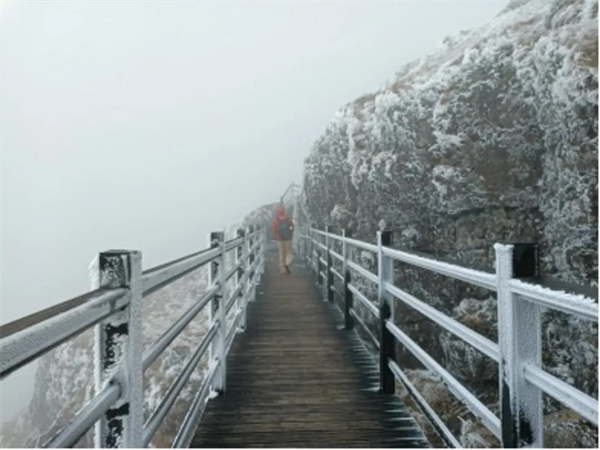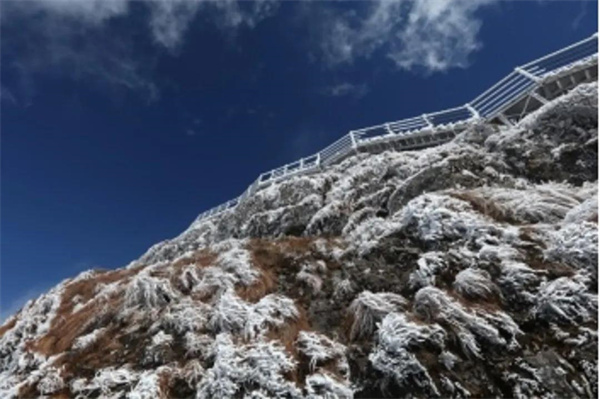 在霧凇的裝扮下,轎子雪山披上了一層白紗,樹木怪石都穿上了晶瑩剔透的華服,到處都是銀絲閃爍,好像仙子一般美麗動人,不得不驚嘆大自然的鬼斧神工。