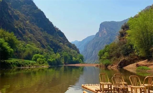 穿行在竹林間的溪流有寬有窄,寬的地方可劃竹筏漂流,狹窄之處則宛若小巷,江水清澈空靈,水中游魚戲蝦、彩色卵石歷歷可數。
