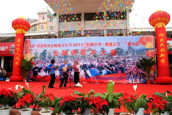 牟定,滇中一方沃土,具有地理位置居中、人力資源豐富、立體氣候明顯、民族文化絢麗、能工巧匠眾多、礦產資源豐富的特點。溫和的氣候,適宜動植物繁衍生息。昆楚大高速(復線)、元雙、姚廣公路縱橫交錯,通信網絡覆蓋城鄉。境內出土的春秋戰國時期的銅鼓、編鐘,發現于丁家沖的新石器文化遺址,修建于明嘉靖二十六年(公元1547年)的文廟、天臺三清閣,有“千年”歷史之說的白塔,始建于清康熙四十二年(公元1703年)的南塔,閃現著牟定悠久燦爛的歷史。安樂大沙地、戌街伏龍基發掘的恐龍化石,再一次把牟定的歷史延長了上千年。牟定是紅軍長征傳播火種的地方,1936年4月紅軍長征經過境內4個鄉(鎮),15個村委會,50個自然村,行程49千米。地下黨組織在牟定中學的活動,新村農民武裝暴動形成了厚重的歷史文化。以彝族為主的民族文化內涵豐富,各具特色,絢麗多姿。奔放的左腳舞,激情的左腳調激發了牟定昂揚向上的活力。尤其以三月會為主的民族節日,演繹出了豐富多彩的左腳舞文化,2006年牟定被命名為“彝族左腳舞之鄉”,彝族左腳舞被列為云南省第一批非物質文化遺產保護名錄。2008年又被列入國家級第二批非物質文化遺產保護名錄。2009年萬人同跳左腳舞成功申報世界吉尼斯紀錄。左腳舞文化扮靚了人們的生活,促進了民族節日、民族服飾、民族樂器、民族風俗、民族工藝、民族美食的傳承和發展,承載了牟定各族人民的心愿。應運而生的左腳舞文化方興未艾如火如荼,左腳舞已經融入到了人們的休閑娛樂健康等日常生活。