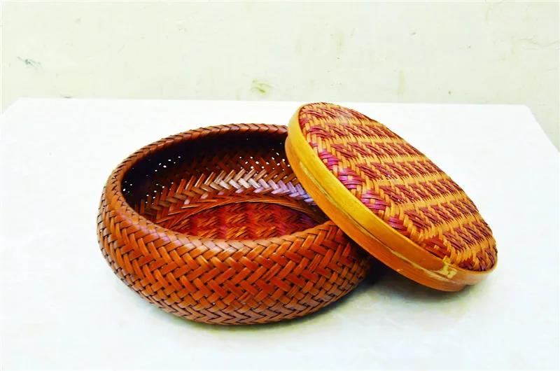 竹編工藝分細(xì)絲、粗絲兩種,編織中有起底、編織、鎖口三道工序。整個(gè)編制過程,以經(jīng)緯編法為主。在此基礎(chǔ)上,還穿插各種技法,如疏編、插、穿、削、釘、扎、套等。為使工藝品有更高的欣賞性,編制圖案要用染色配合,形成色彩對(duì)比,做出鮮艷明快的花紋。“喜“和‘“福“等吉祥字樣,以大紅大紫為主;收藏工藝品,一般要做舊,作品顏色偏深。