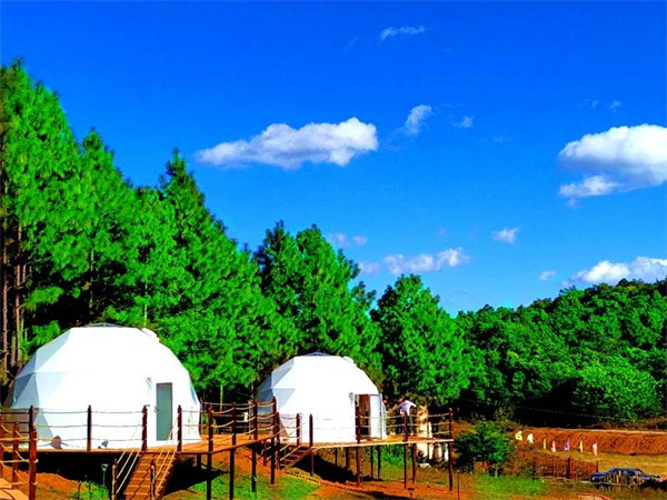走入祿豐市一平浪鎮橫溝村委會新街子天然大氧吧,映入眼簾的是,清風明月彈清曲、綠海松濤翩起舞的一派旖旎風光,六間造型新穎的帳篷酒店赫然出現在眼前。