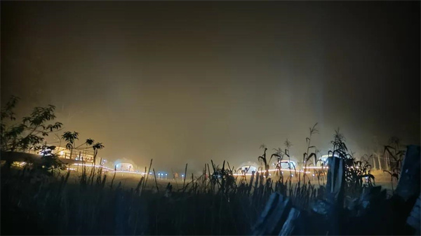 共享自然資源,打造配套網紅創意住宿。是星空迷上了山野,還是山野迷上了星空?夜晚的帳篷,也帶來另一番風景。入夜,微光溢出帆布,猶如墨色玉盤灑下一串夜明珠。這個創意項目將輻射帶動村集體經濟和周邊群眾增收,第七個帳篷正在建設中,待建設好后就是“北斗七星在云上星空閃閃發光”。