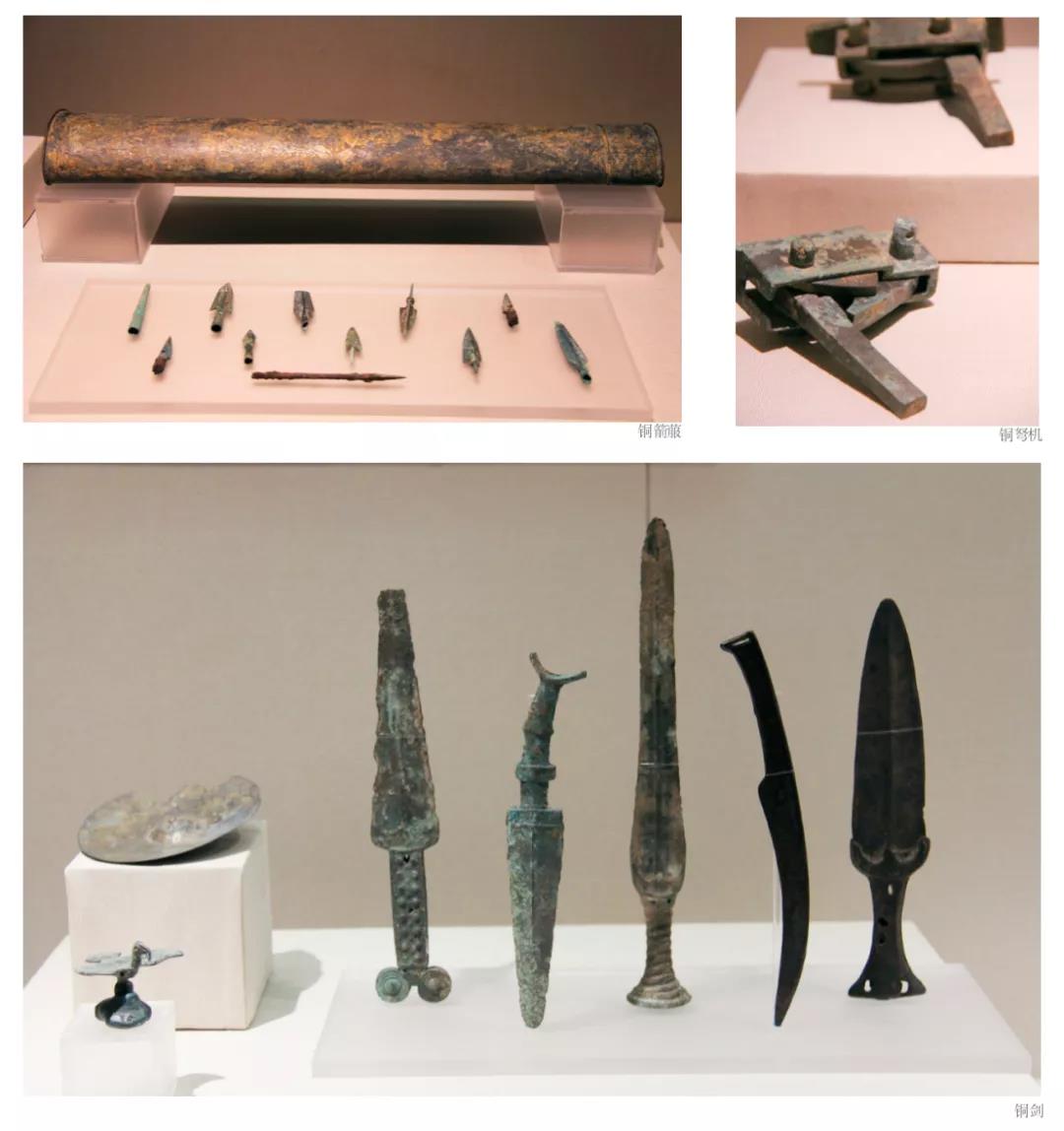 兵器是滇池地區(qū)出土最多的一種青銅器,達上千件之多。僅晉寧石寨山71號墓出土的各類兵器就有70多件,其中,矛皆成捆放置,最多一處放有16捆,表明了戰(zhàn)爭在滇人的社會生活中占有特殊的重要地位。