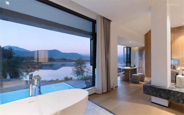 酒店里的124棟套房及別墅都面向玉龍雪山,在任何一個別墅內(nèi),玉龍雪山的美景都能盡收眼底。一邊欣賞令人神往的玉龍雪山全景,一邊在私人戶外恒溫按摩泳池里盡情放松,十分安逸。運氣好時,還可一觀日照金山。