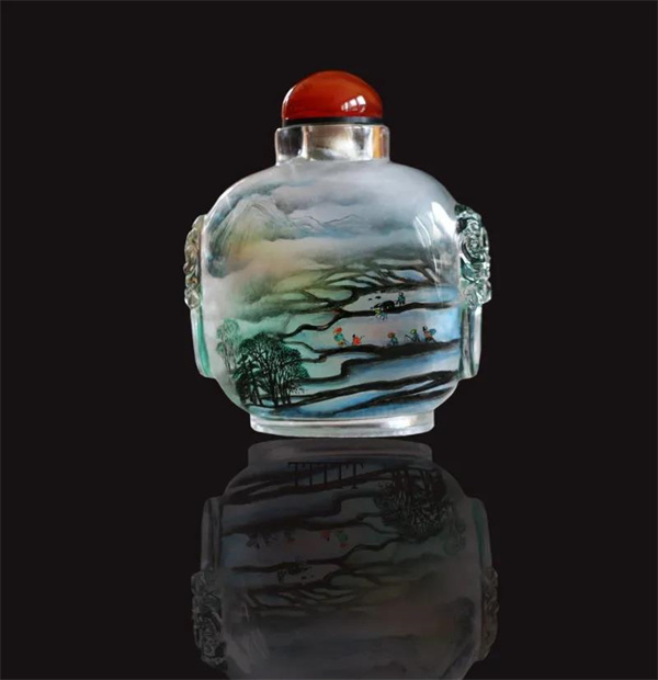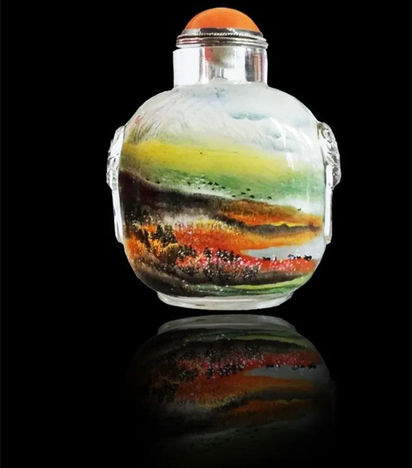 內畫出現于清代,是我國特有的傳統工藝,素以“寸幅之地具千里之勢”著稱,起源于畫鼻煙壺,它是以特制的細筆,伸入玻璃、水晶、琥珀等材質的壺內反向作畫。現代內畫技藝有京、冀、魯、粵、秦等流派。