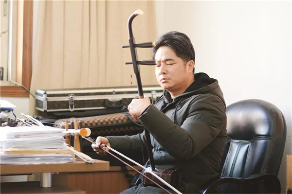“音樂最能直擊人們靈魂深處,引發(fā)內(nèi)心情感共鳴。”一個(gè)好的主弦樂器演奏者,不但要會(huì)演奏,還要會(huì)看戲,對(duì)劇本、對(duì)人物有自己的理解和把控。之后把音樂通過樂器的演奏融入到演員的表演當(dāng)中,最終感染觀眾、打動(dòng)觀眾,讓觀眾感受到人物內(nèi)心的情感。”戚異峰現(xiàn)場(chǎng)為我們演奏了一段《竇娥冤》,內(nèi)容是竇娥對(duì)自己冤屈的訴說,我們能從音樂中感受到竇娥的滿腹冤屈,一旦沒了音樂,全靠演員在臺(tái)上進(jìn)行干巴巴的表演,很難引起觀眾的共鳴。樂器的加入,則能讓觀眾更快地感受到表演者的情感表達(dá),并融入其中。”戚異峰說。