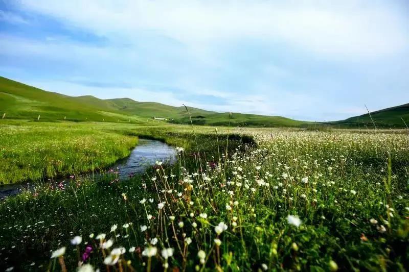春夏之際,星星點點的野花在綿綿草山盛開,目之所及,一片山花浪漫。