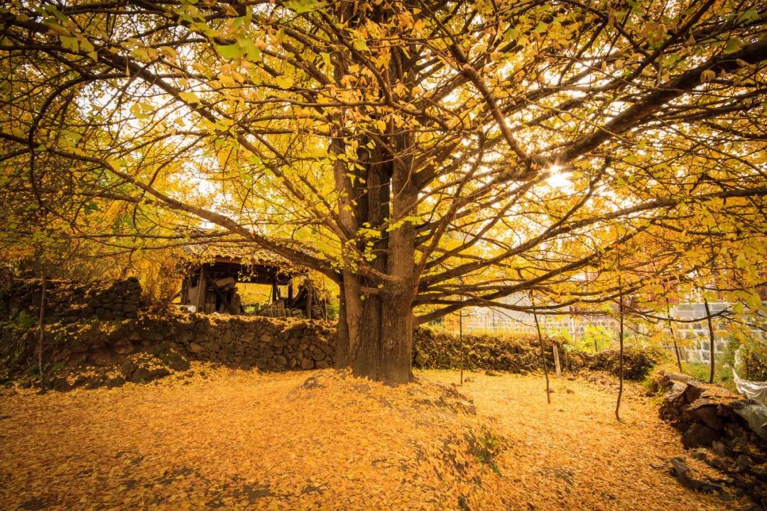 江東村,號稱“中國第一銀杏村”,整個古村被3萬多棵銀杏樹所圍繞,樹齡超過500年的銀杏就有50多棵,是云南地區規模最大、最密集、最古老的一片銀杏林。